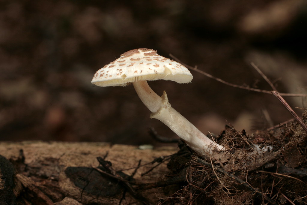 - Forming a thin, membranous ring on the stem that is fragile and often disappears or remains as tatters on the cap margin; the ring is typically white on top and occasionally brownish on the underside.
